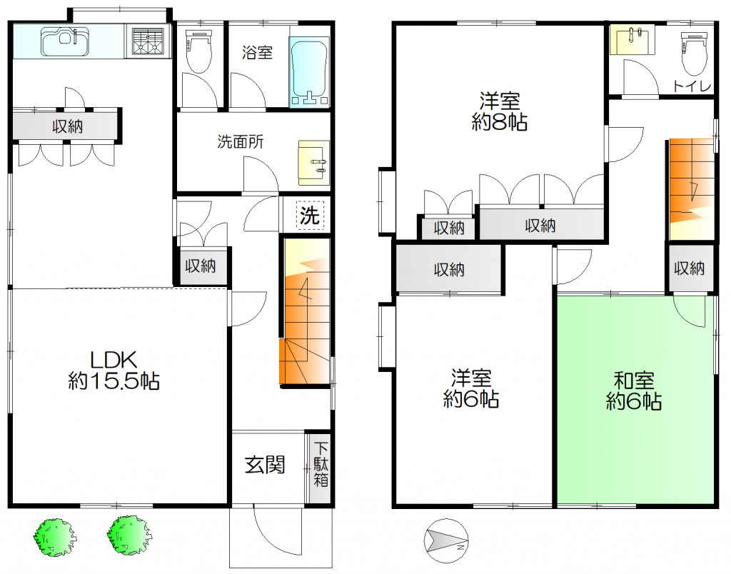 間取り | 3LDK | 間取り詳細 | LDK15.5 洋室8 6 和室6 | 専有面積 | 89.25㎡ |