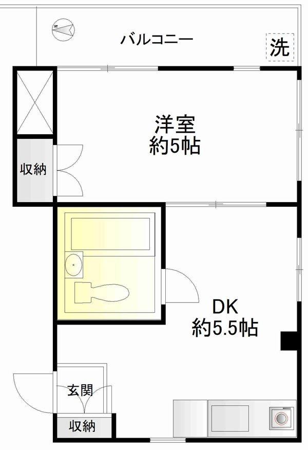 間取り | 1DK | 間取り詳細 | DK5.5 洋室5 | 専有面積 | 22.42㎡ |