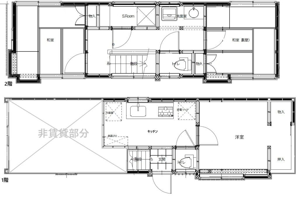 | 種別/構造 | 一戸建て/木造 | 階部分/階建て | 地上1・2階部分/地上2階建て | 方位 | |