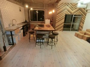 オフィスなのに広々としたキッチン回りは造作のオサレテーブルがアクセントとなり落ち着きます♪